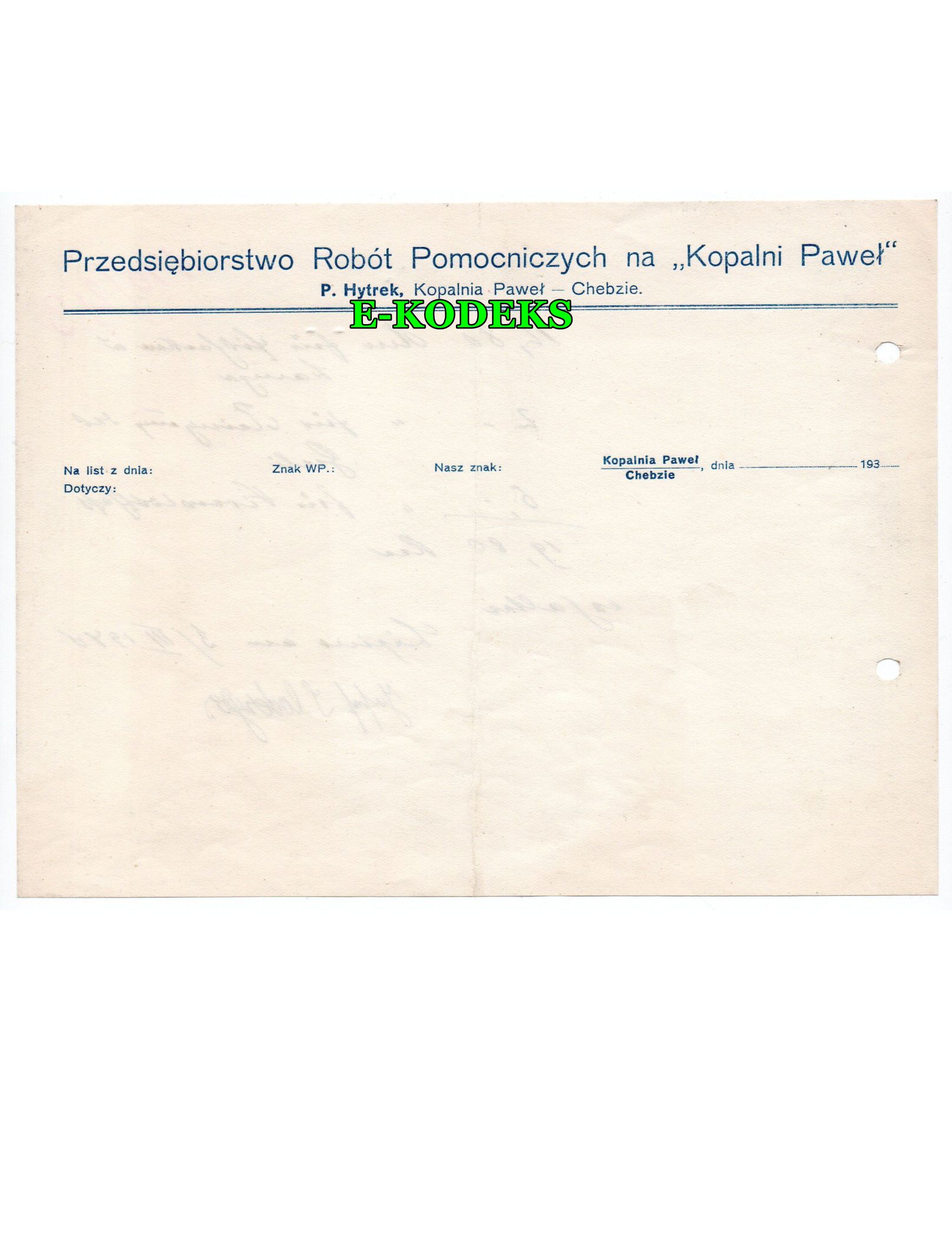 25,00 złStary przedwojenny dokument firmowy z Bytomia na Górnym Śląsku (wtedy Beuthen OS.) z 1937 r.