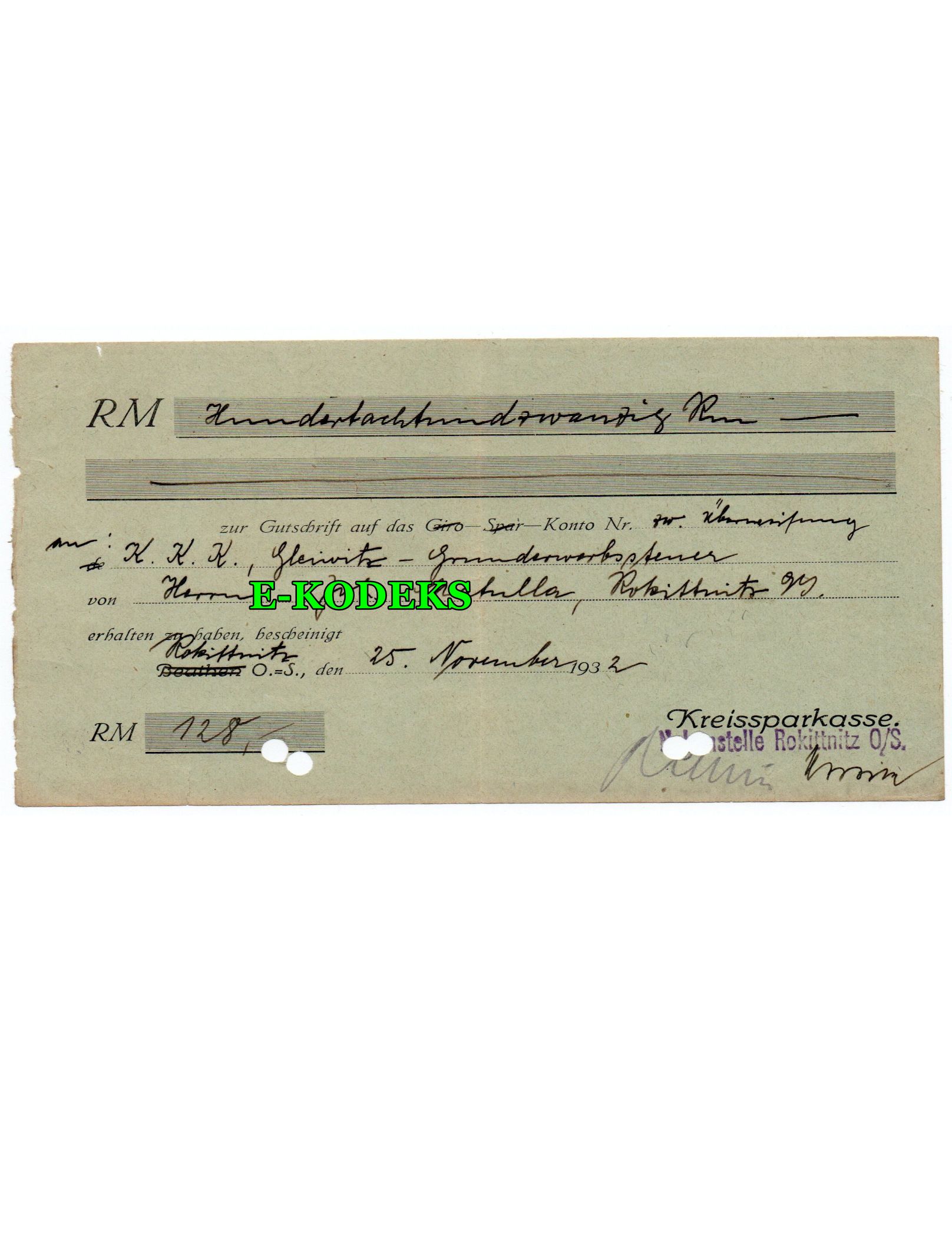 25,00 złPismo sądowe Sądu obwodowego (sąd I instancji) w Gliwicach (na specjalnym niemieckim urzędowym druku)