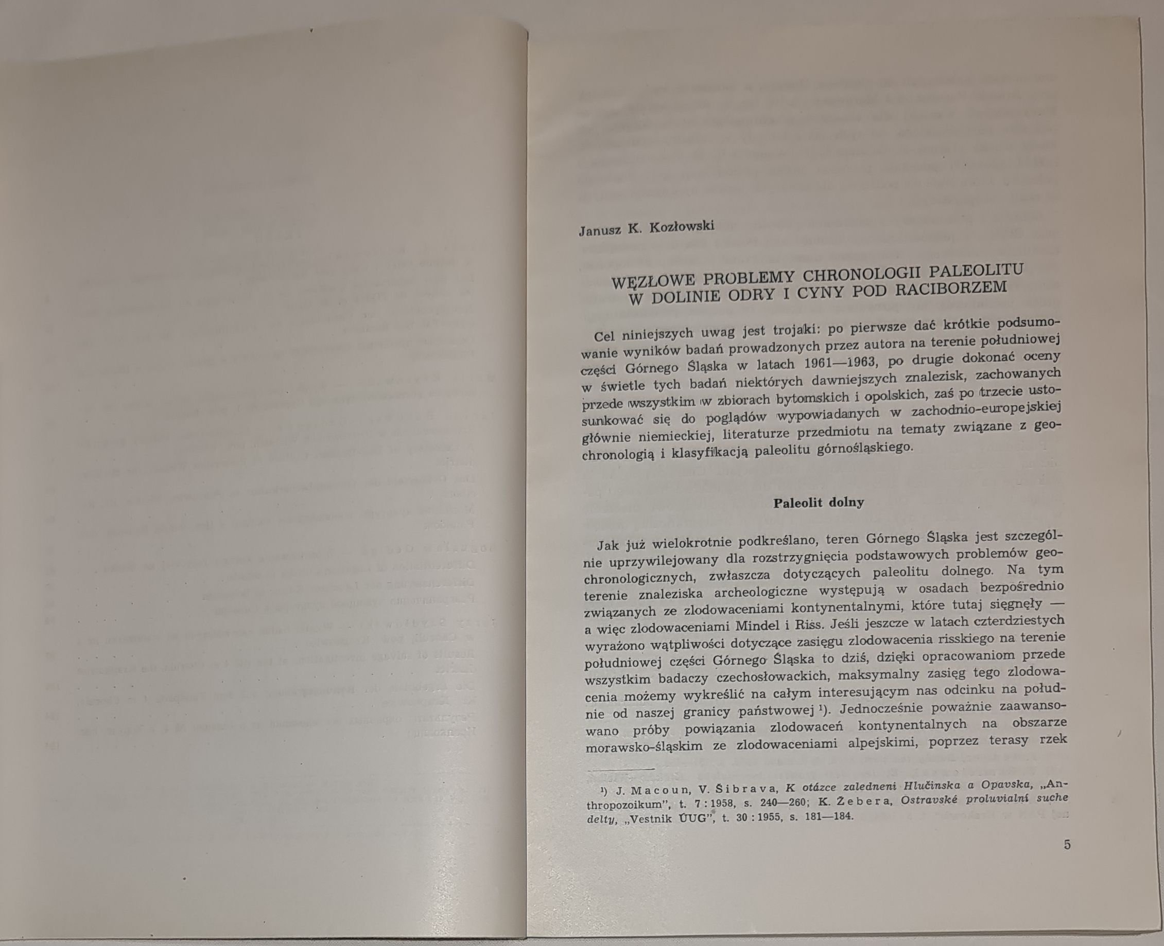 Janusz K. Kozłowski — Węzłowe problemy chronologii paleolitu w dolinie Odry i Cyny pod Raciborzem