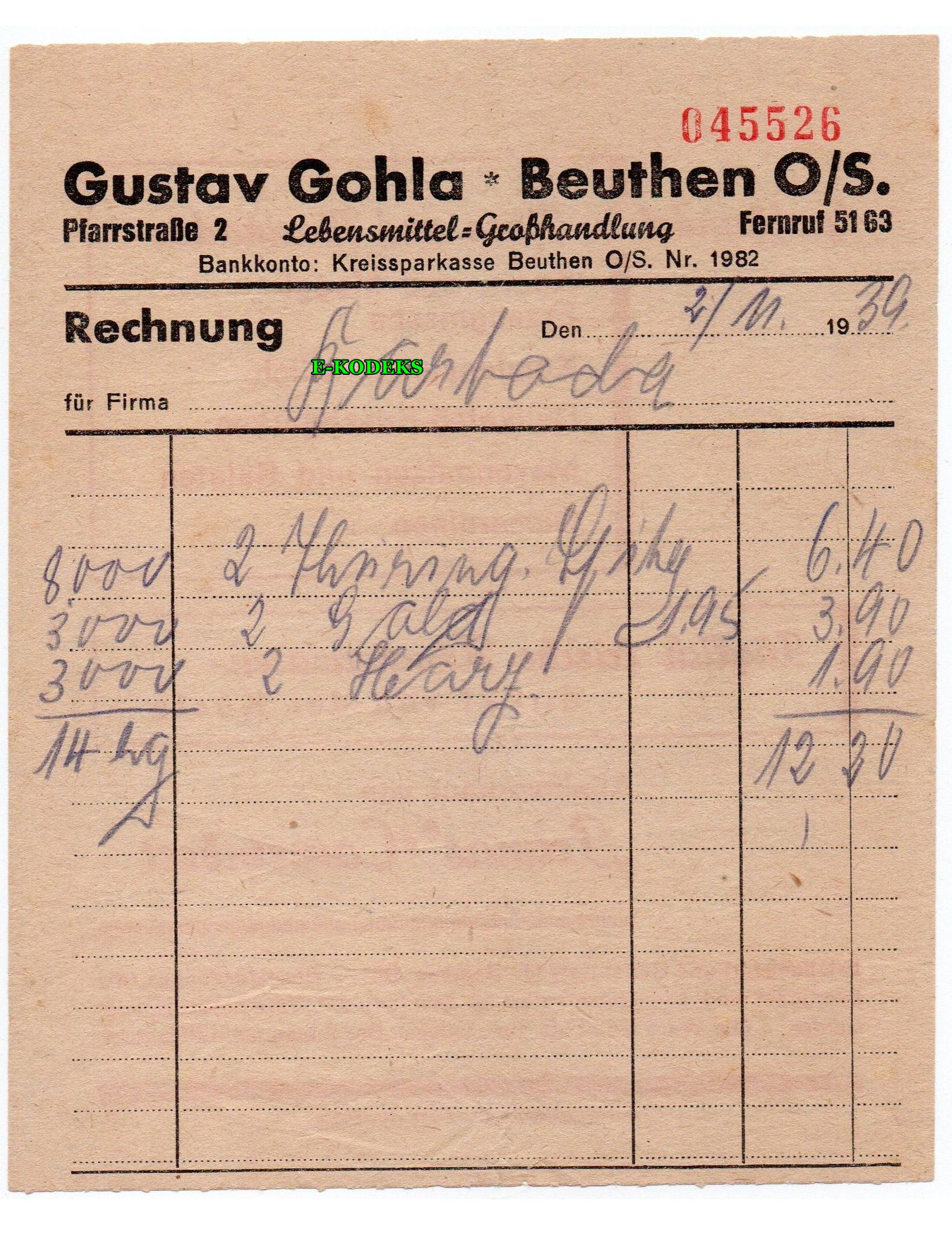 Beuthen O/S. Gustav Gohla Lebensmittel-Großhandlung 1939 / Bytom Hurtownia Artykuły spożywcze reklama