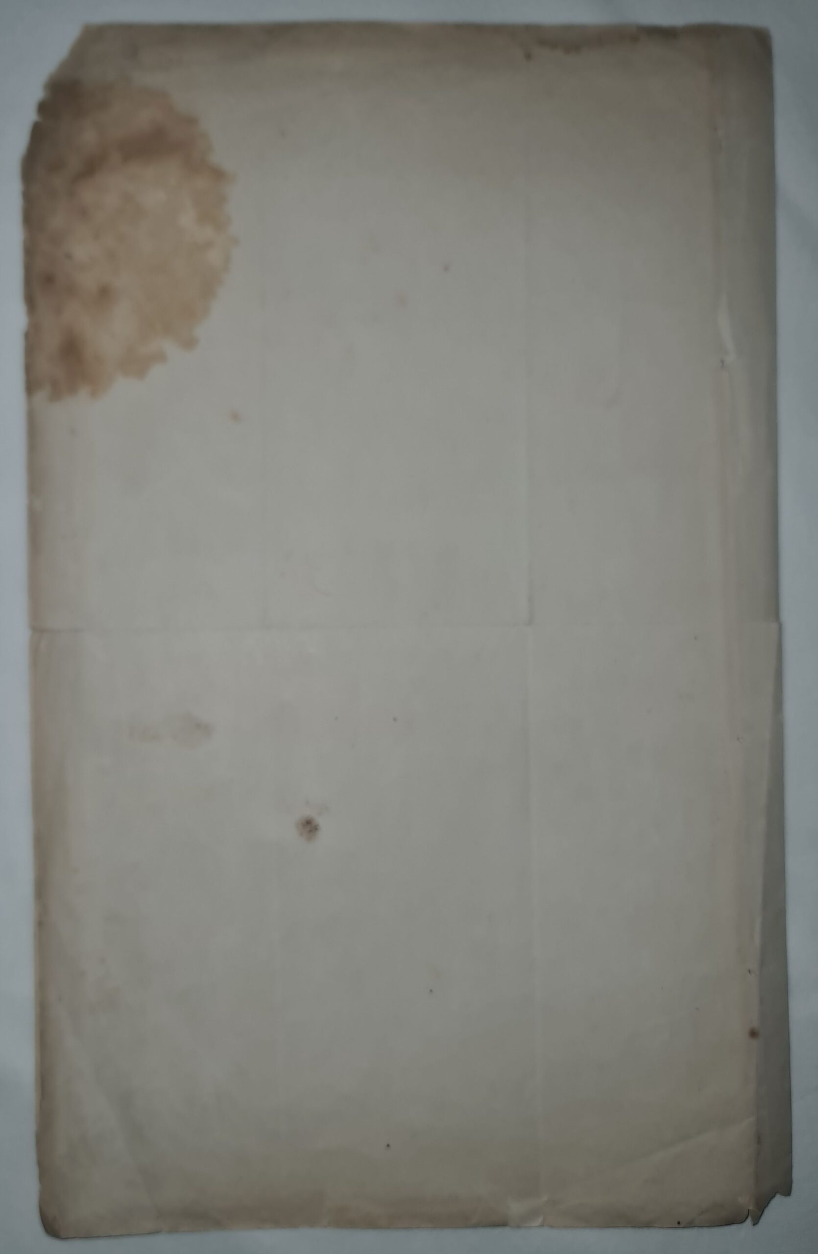 Dokument po latach jest w stanie jak na fot. Widoczne po upływie ponad półtora wieku znaczne zaplamienia, miejscowe ubytki, naddarcia i zagięcia. Otworki ze śladami starego przeszycia dokumentów, ślady złożenia i przybrudzenia dokumentu (miejscowe zacieki).