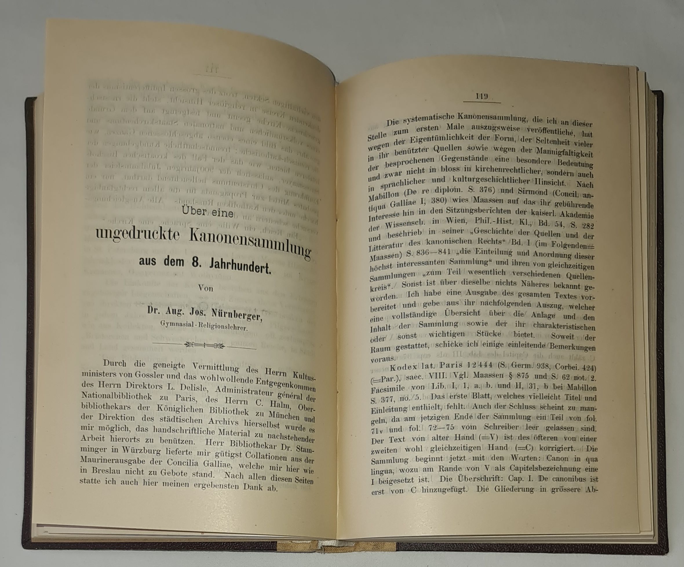 4. Dr Aug. Jos. Nürnberger (dr teologii katolickiej, nauczyciel religii w gimnazjum) w rozprawie przedstawia zbiór niedrukowanych kanonów (zbiór norm prawa kościelnego) z VIII wieku; część tekstu (wypisy z Kodeksu Sangermańskiego opublikowano w oryginale czyli w jęz. łacińskim)