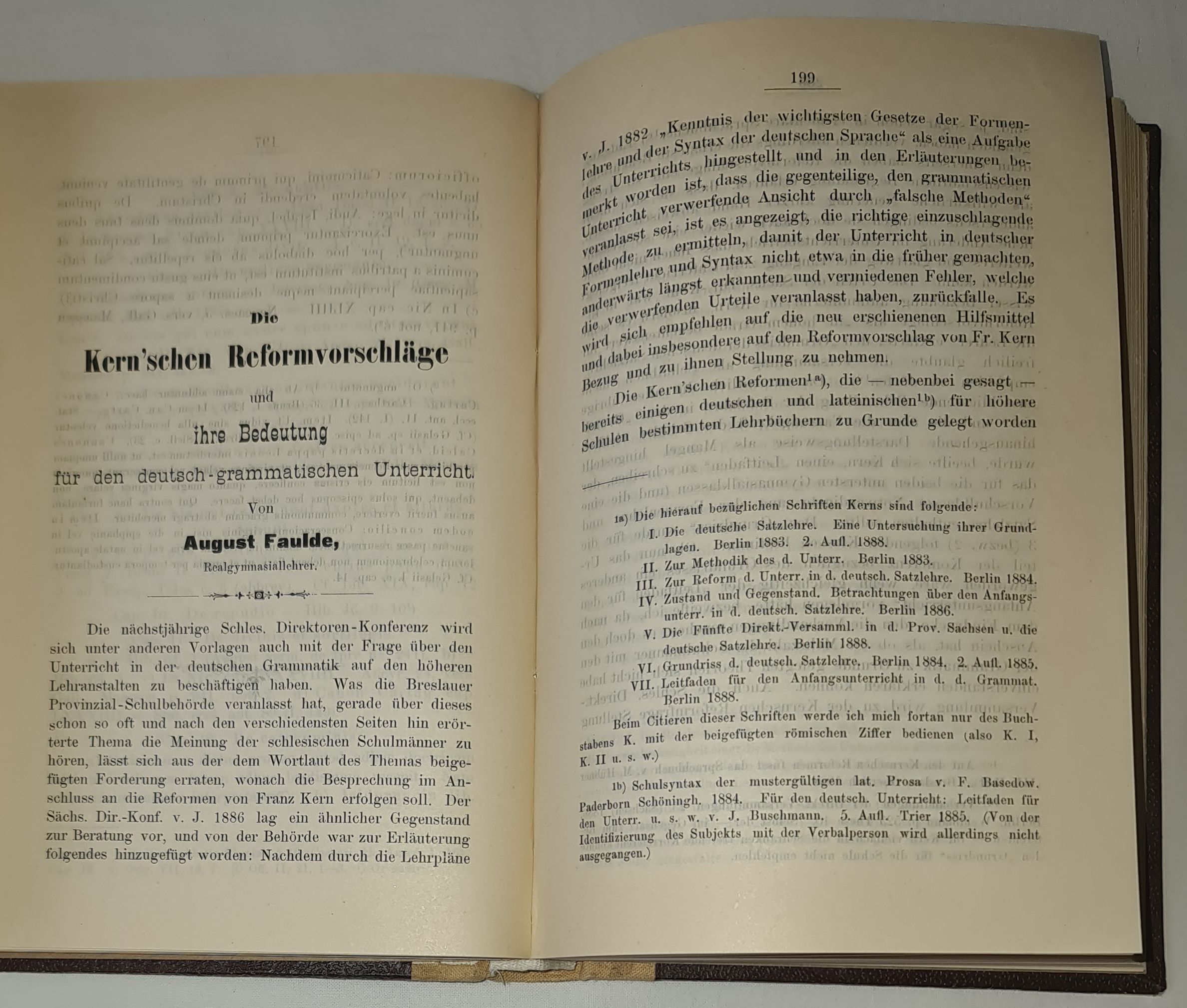 5. August Faulde (nauczyciel w gimnazjum realnym) omawia propozycje reform Franza Kerna dotyczących gramatyki niemieckiej i ich znaczenia dla szkół średnich i wyższych