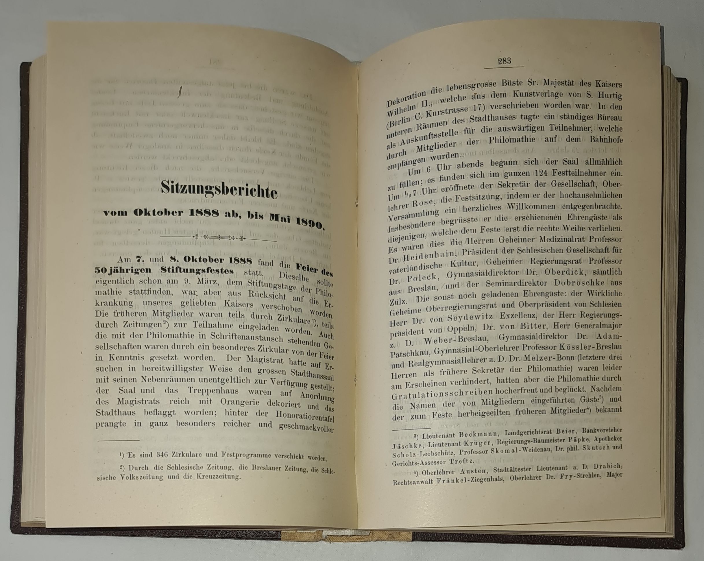 1. Bericht über die Feier des 50jähr. Stiftungsfestes