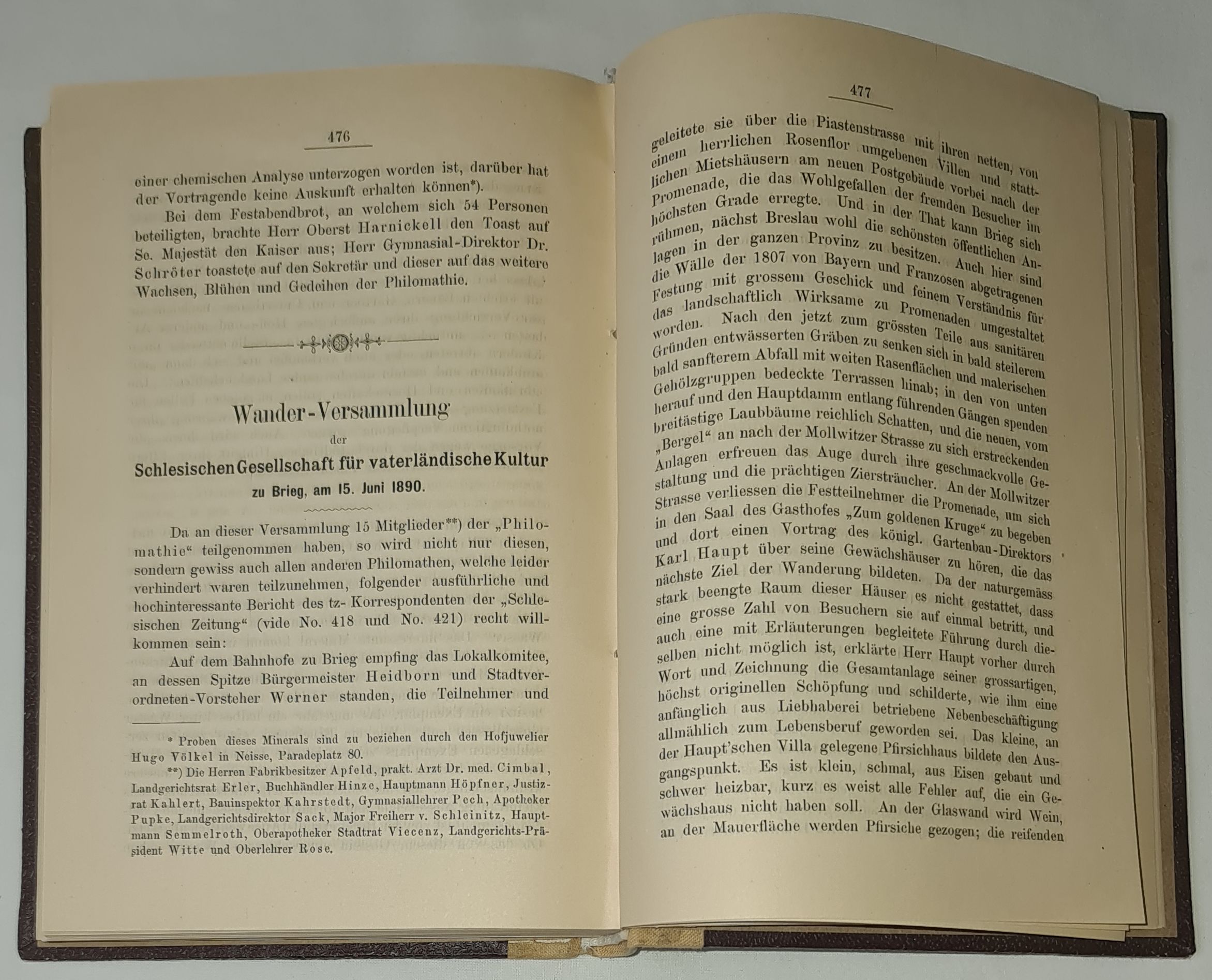 Über die Wanderversammlung der Schlesischen Gesellschaft für vaterländische Kultur zu Brieg, am 15. Juni 1890.