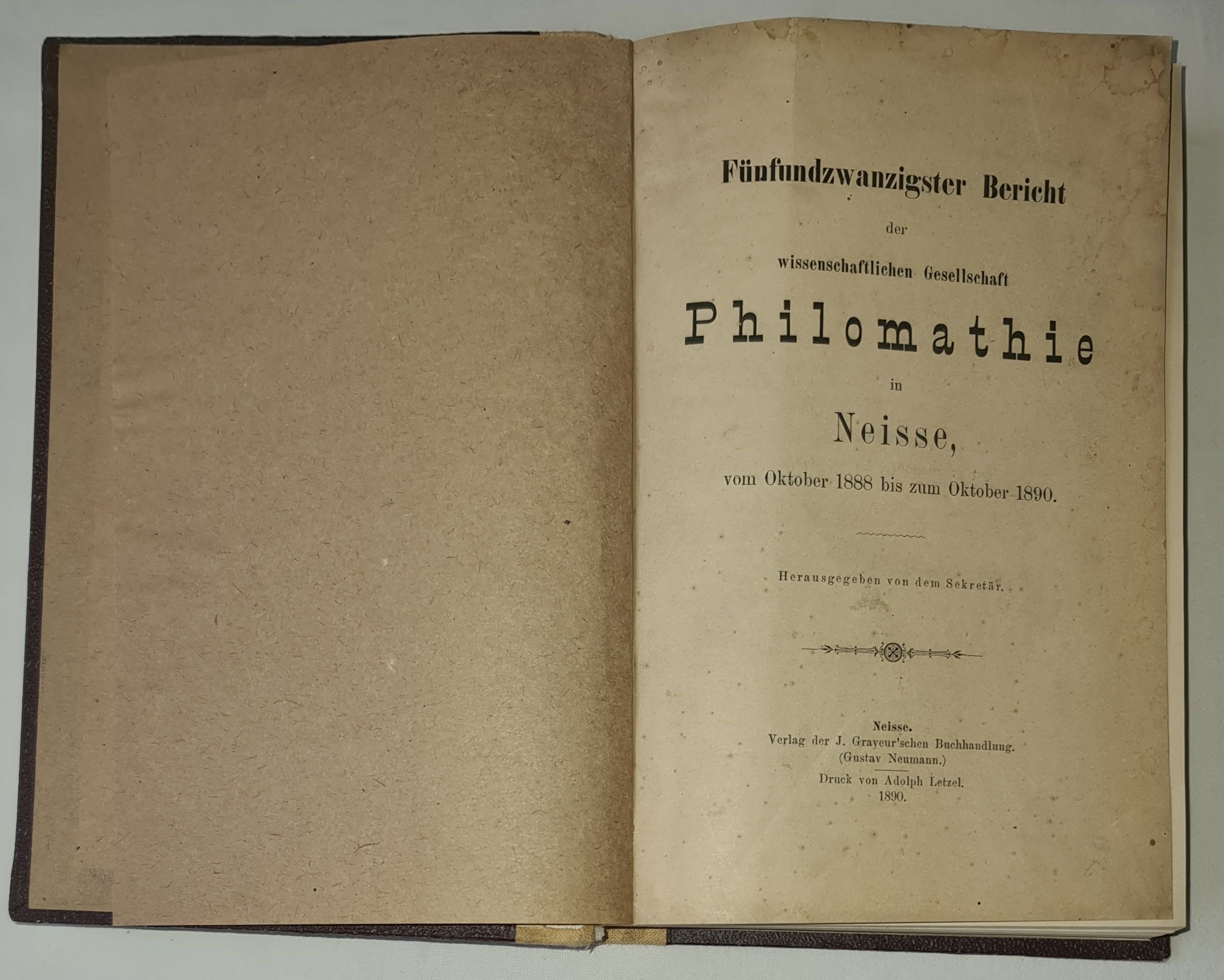 Fünfundzwanzigster Bericht der wissenschaftlichen Gesellschaft Philomathie in Neisse, vom Oktober 1888 bis zum Oktober 1890 [25 Sprawozdanie Towarzystwa Naukowego Filomatów w Nysie, od października 1888 do października 1890]