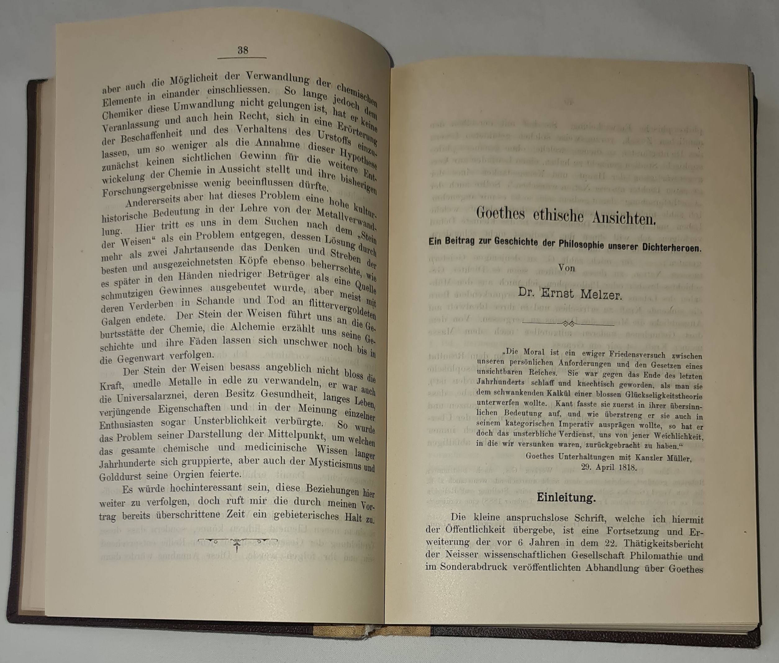 2. Dr Ernst Melzer (Doktor filozofii, nauczyciel w gimnazjum realnym) zajął się etycznymi poglądami Goethego, jako przyczynkiem do historii filozofii bohaterów poezji