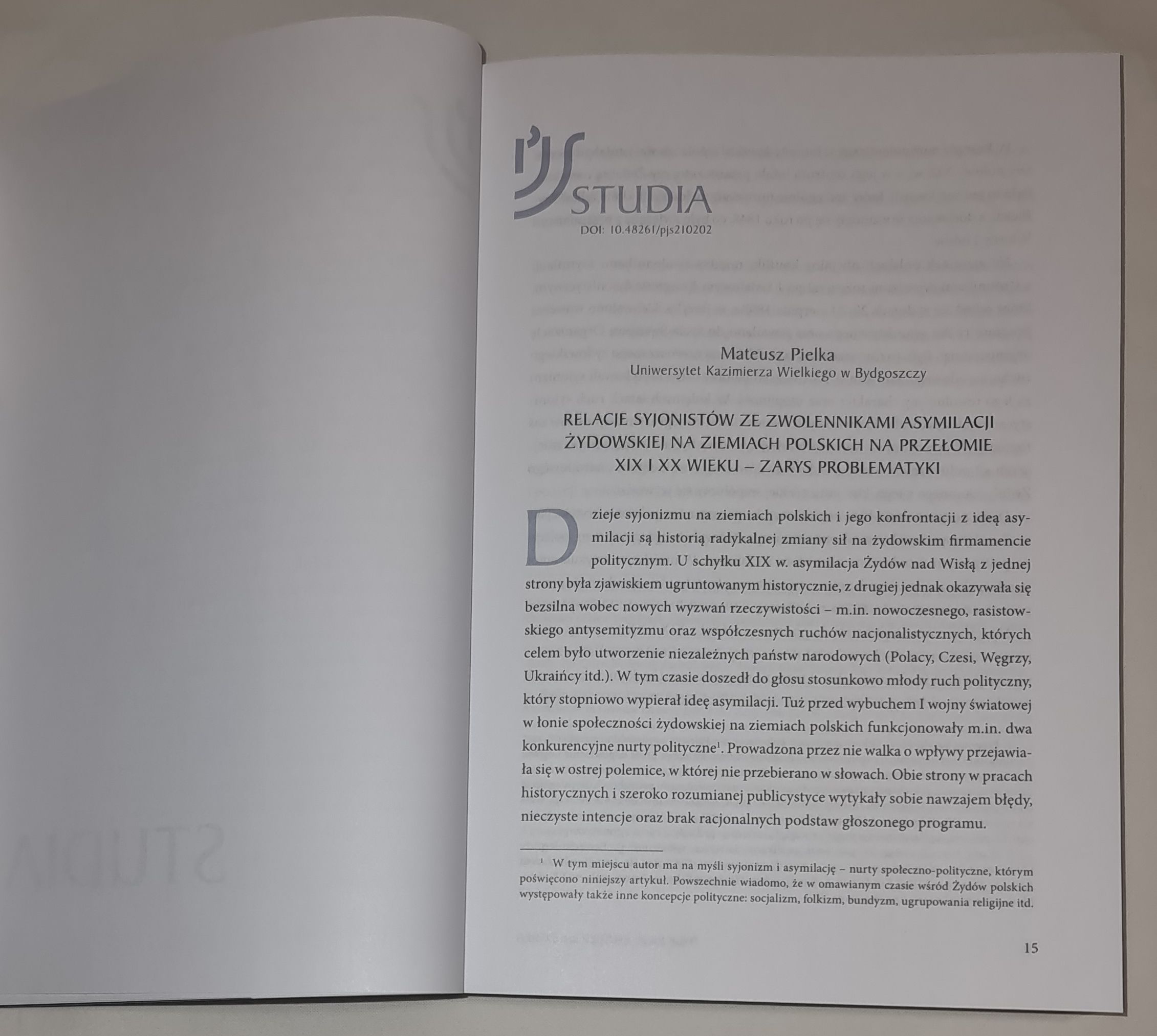 Mateusz Pielka — Relacje syjonistów ze zwolennikami asymilacji żydowskiej na ziemiach polskich na przełomie XIX i XX wieku – zarys problematyki
