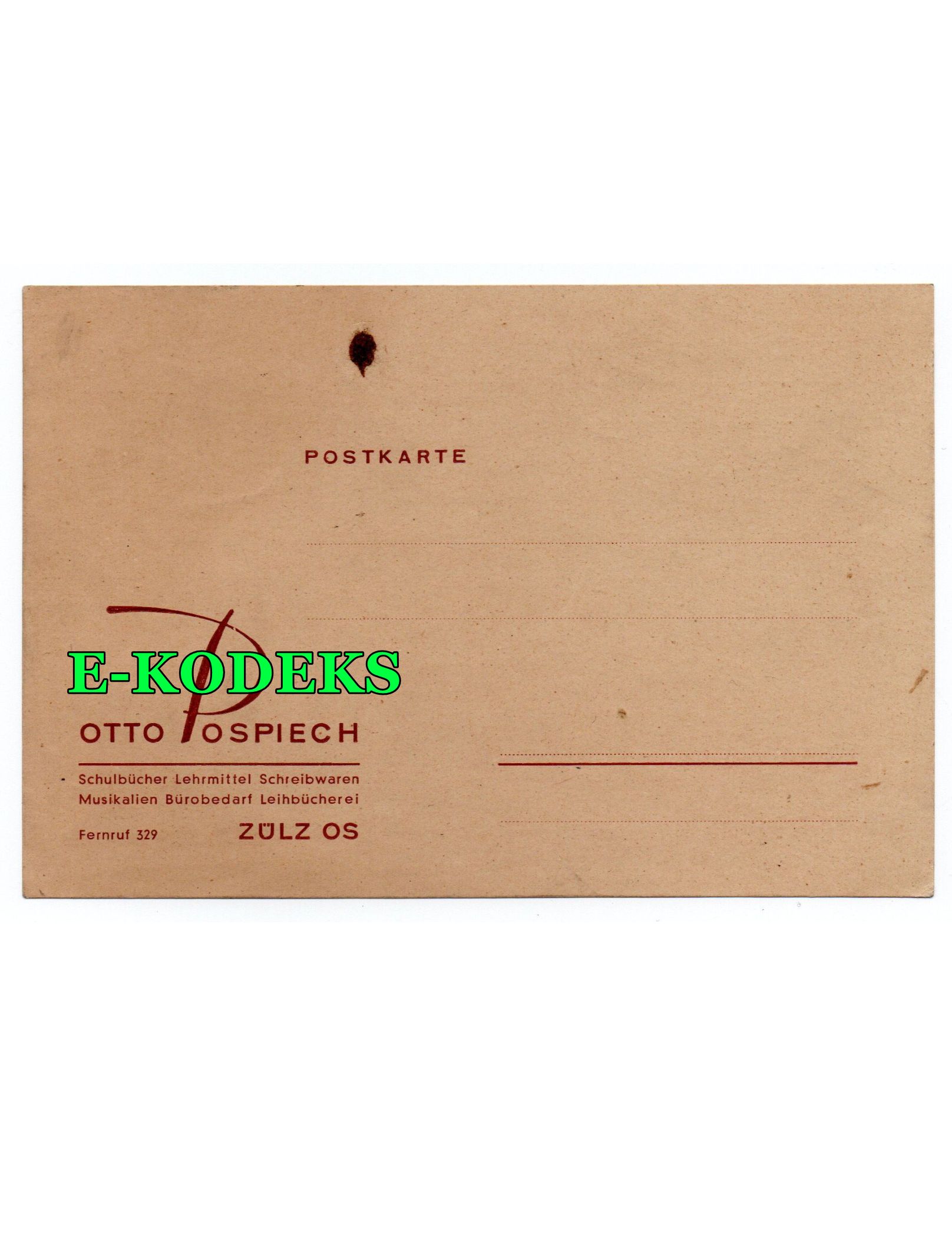 Zülz OS. Postkarte Firma Otto Pospiech, Biała pow. Prudnik, Firmowa karta pocztowa – księgarnia
